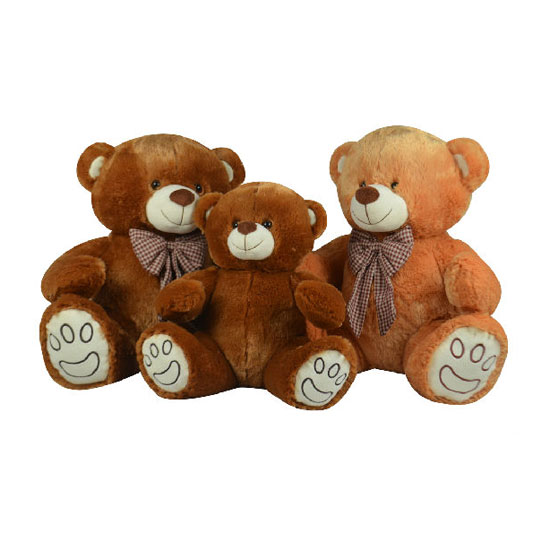 This is a toy bear made of quality plush fabric for a soft texture. It boasts a vivid and lovely design in brown. This soft toy bear is ideal for little children to play with.
