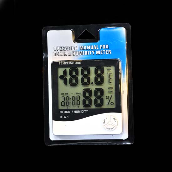 This temperature and humidity meter displays the ambient temperature and humidity simultaneously. It boasts a slim housing for easy installation. Hour and alarm functions are also included in this meter for added convenience.