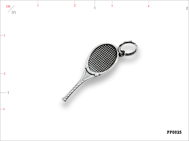 Pendant, tennis racget. : Material 925 Sterling Silver Weight 0.8 grams.