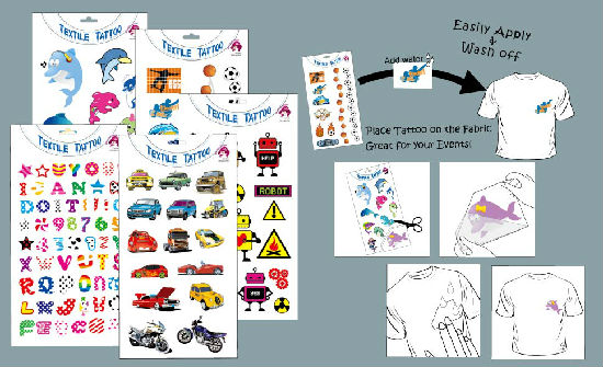 Place tattoo on the fabric and use some water, the character will show on T-shirt.