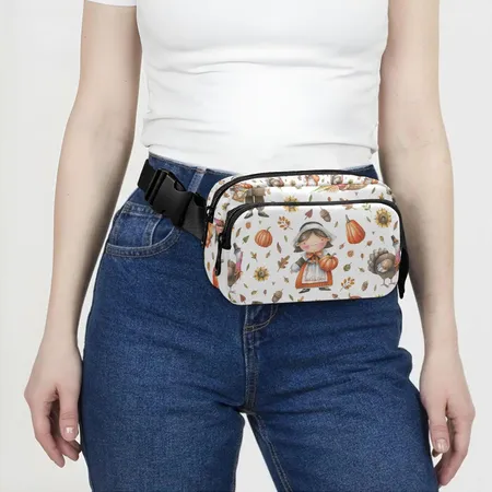 Thanksgiving Cartoon Pattern Pumpkins Sunflowers Flower Cute Fanny Waist Pack