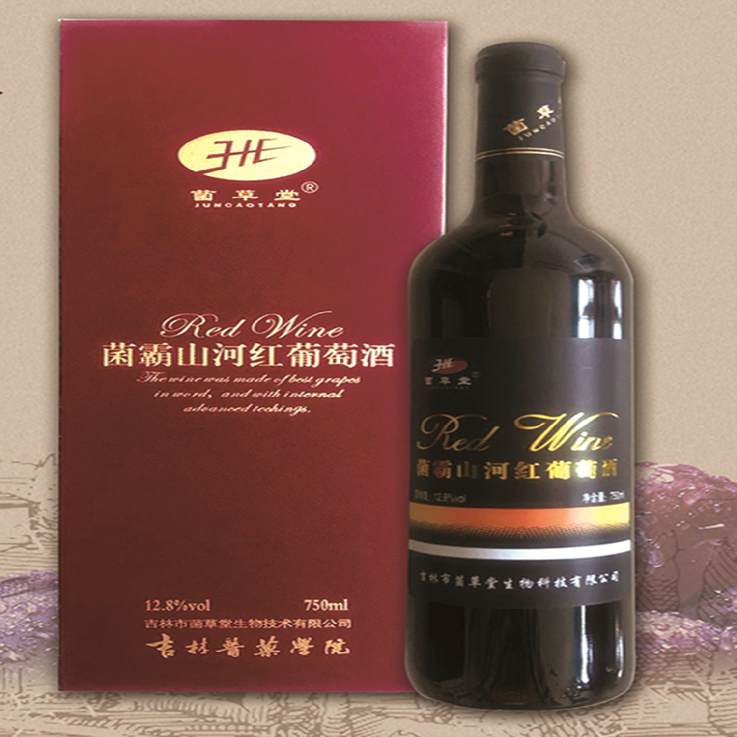 This product is made of wild ice grape juice of changbai mountain with ginseng, maka, cordyceps militaris, raspberry, wolfberry, lotus seed, acanthopanax, yam, liquorice, etc. It is a special health wine for men.