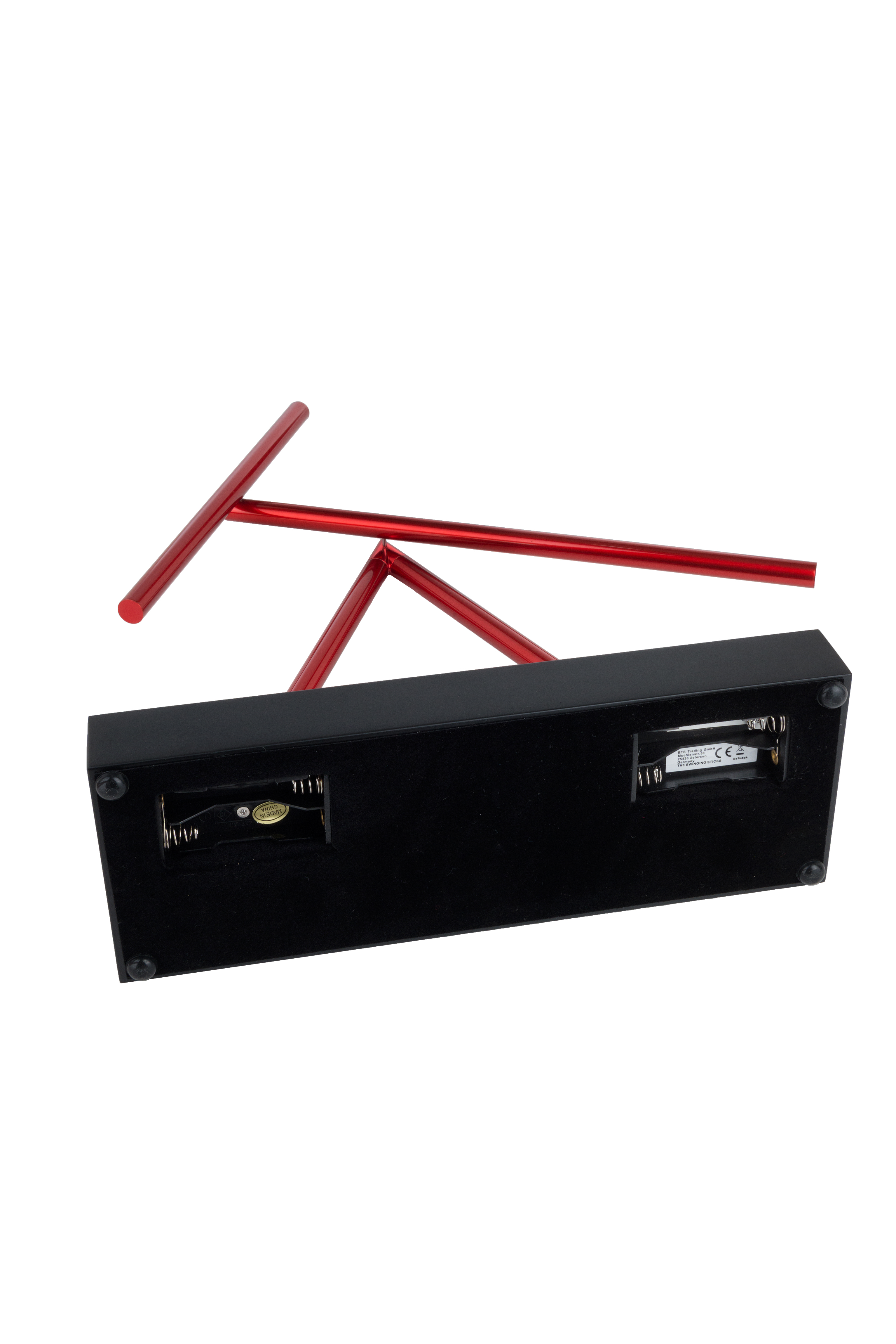 The Swinging Sticks requires 4 AA Alkaline batteries. The 4 AA-Alkaline are included as seen on the picture of the packaging.