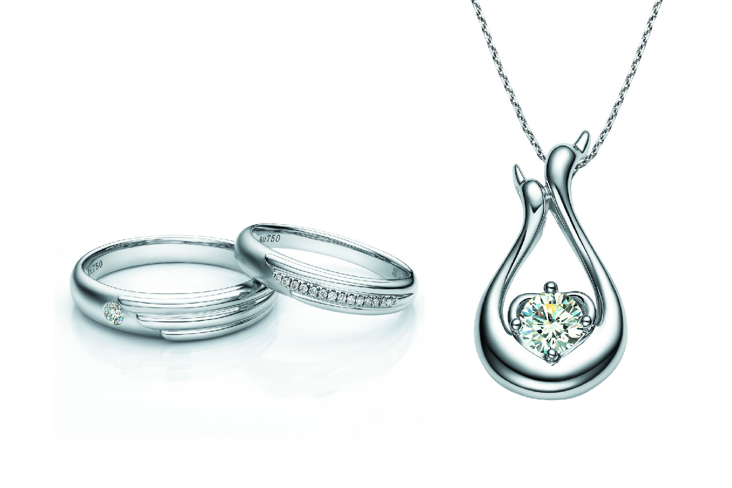Our white swans, spreading their wings to protect their holy love and safe guard their treasured sincerity and faith. The dazzling diamonds together with the finely polished feathers and wings of swan, vividly portrayed the purity of love.