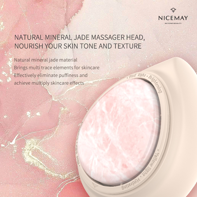 MR-2220 combines heating, 3 colors of LED(yellow, red, and blue lights), and a natural jade head, which helps serum absorption faster.