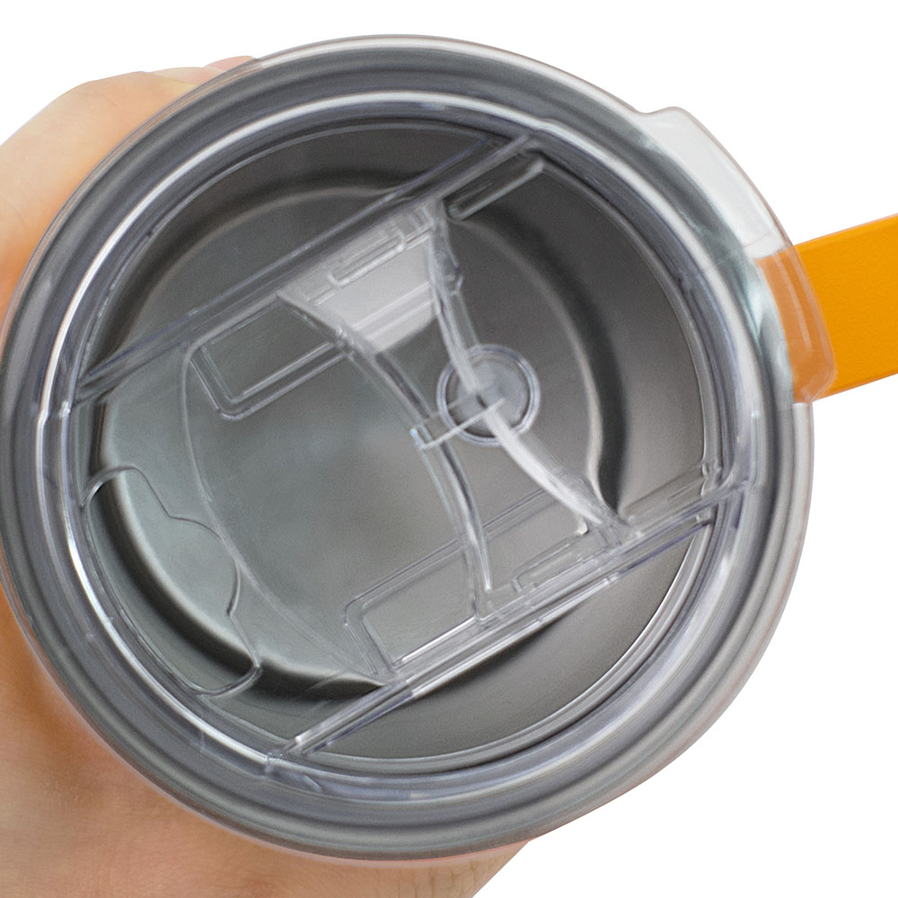 The double-wall insulated design holds in hot or cold while the clear Sip-through lid ensures that you won't spill a drop.