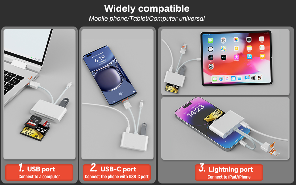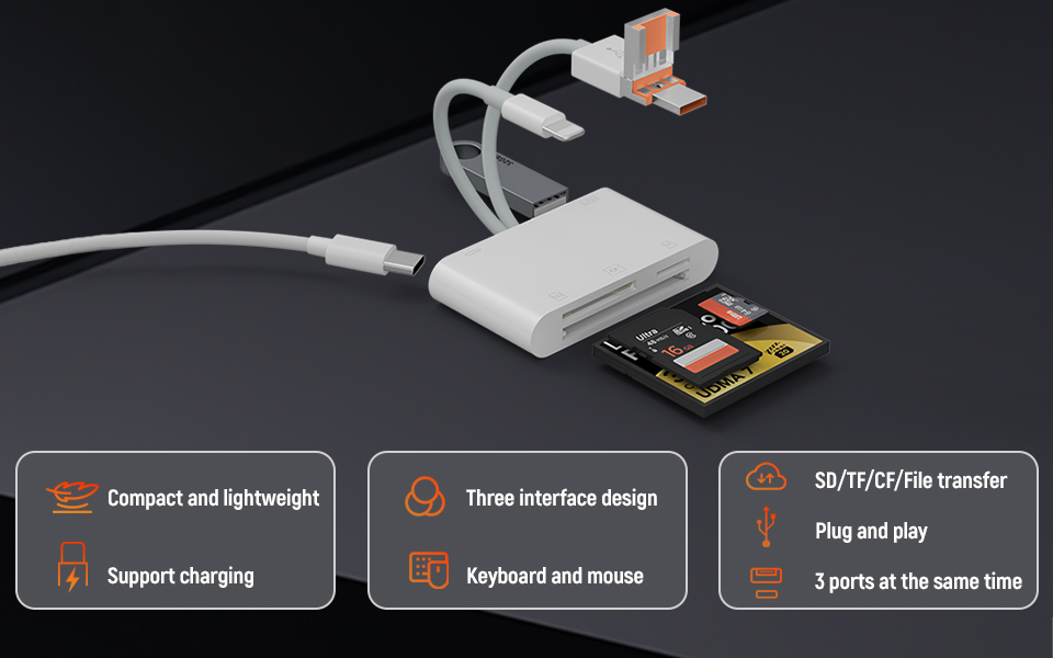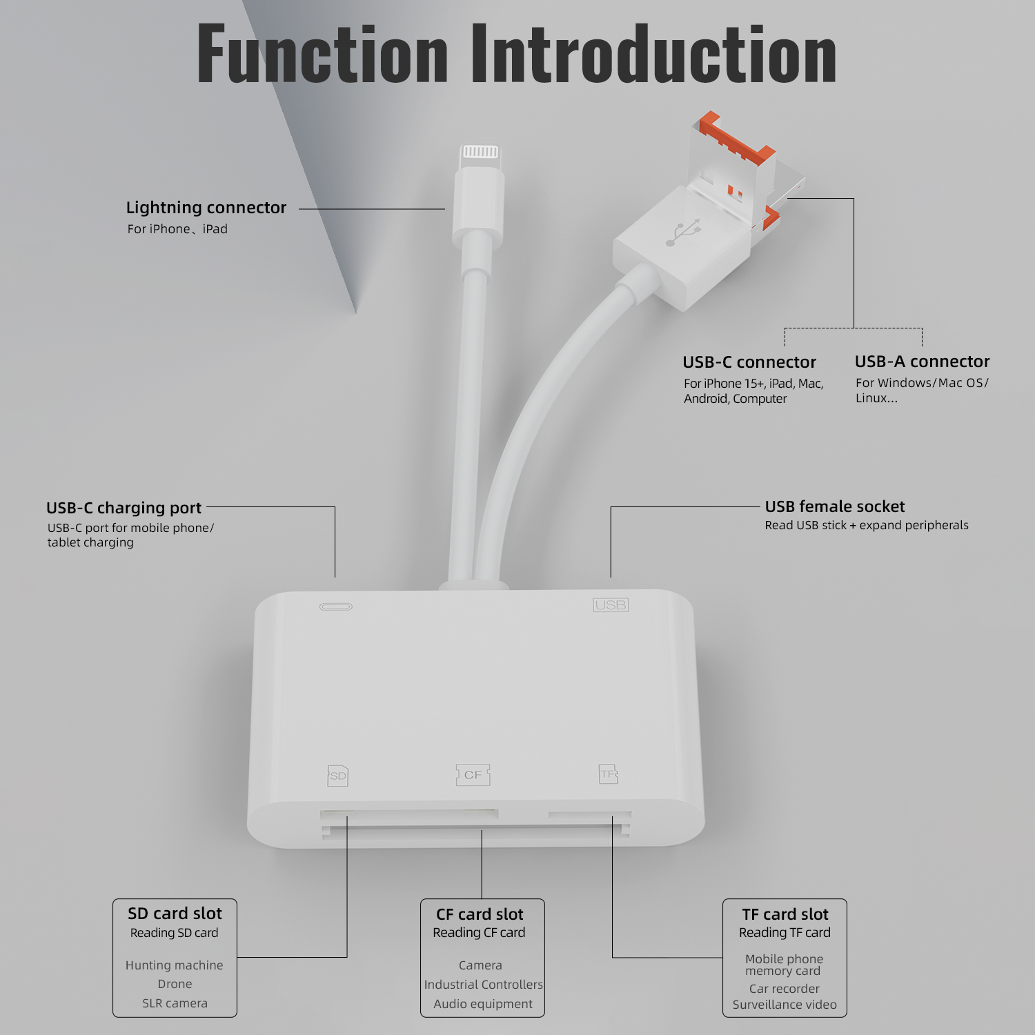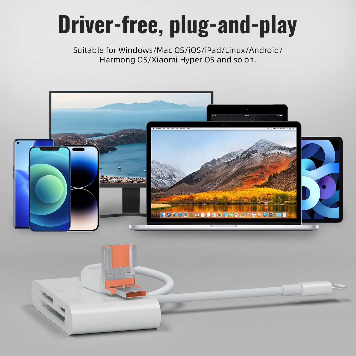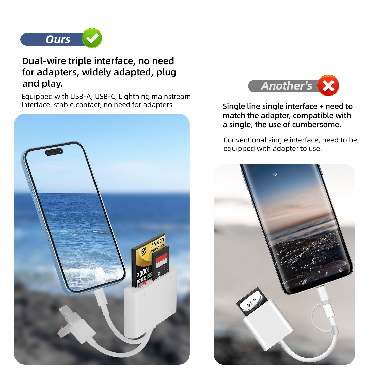As a professional digital accessories supplier, ZOIOT offers this 3‑in‑1 card reader equipped with Lightning, USB‑C and USB‑A interfaces, supporting plug‑and‑play across iOS, Android, Windows and other systems without additional drivers. It allows simultaneous reading of SD and TF cards, enabling fast and stable data transfer for cameras, drones and dashcams. Compact and durable, this reader supports large‑capacity memory cards and delivers high‑speed transmission to meet both daily and professional demands. It is highly suitable for cross‑border e‑commerce, wholesale and corporate procurement. With reliable quality and competitive pricing, ZOIOT is committed to providing global customers with cost‑effective products and professional supply solutions.