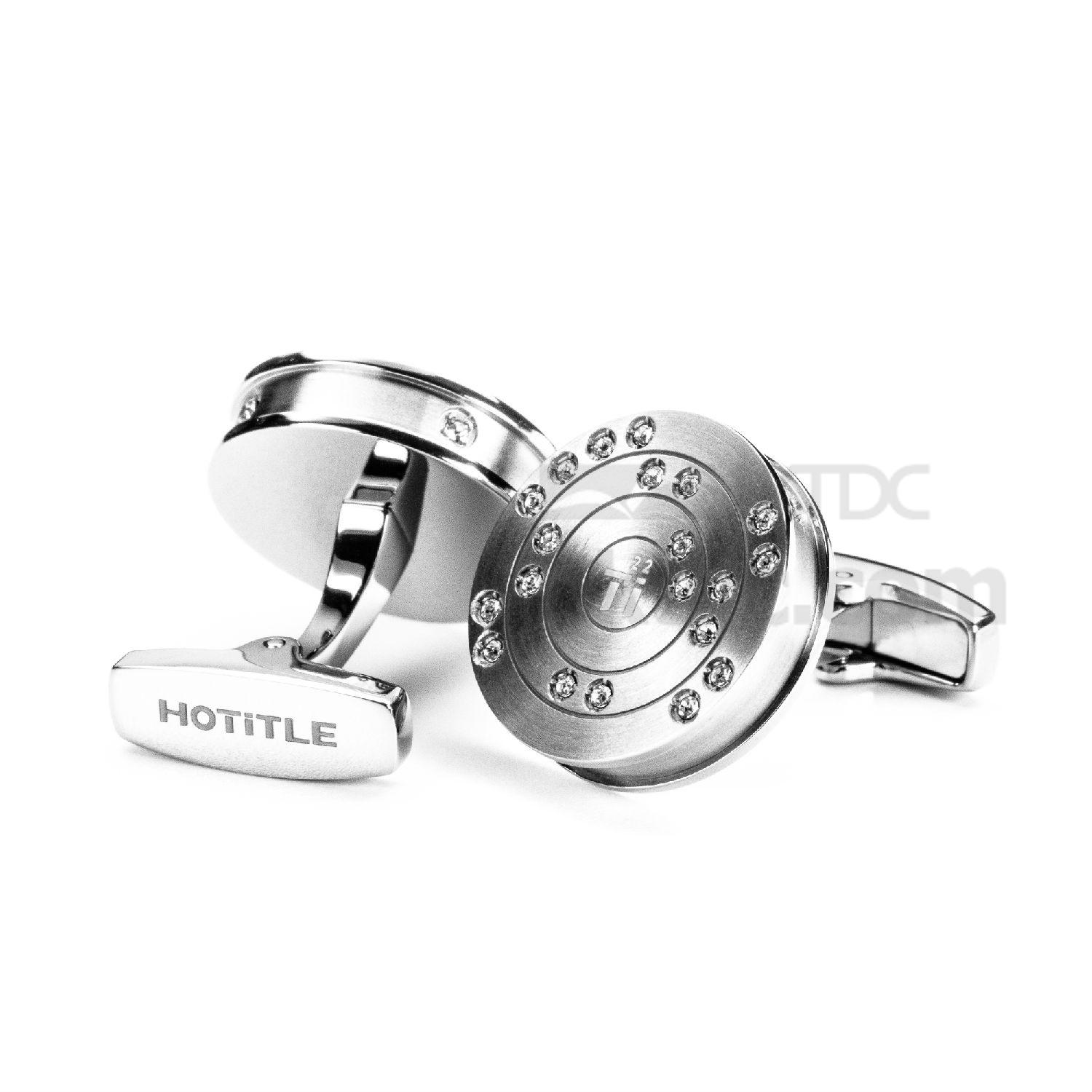 Rendering in a mix of extravagance and minimalism, this pair of cufflinks introduces a simple titanium disc with sparkling Swarovski crystals on top to turn heads. The classic whale back closure further eases fastening at your wrist, making a wonderful accompaniment to formal suits.