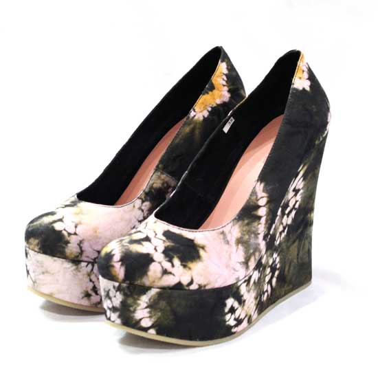 This pair of tie-dye platform wedges is an exceptional addition to your wardrobe. The blending of black and pink hues boasts oriental charm. These elegant shoes elongate your overall figure at the same time.