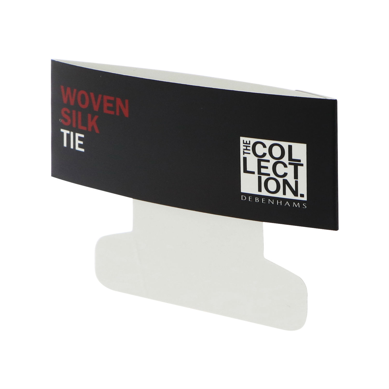 Presented is a tie wrap band to keep your newly designed ties neat and ready for sale. This tie wrap band is printed with a product name, country of origin and more, so your customers would know all essential information at a glance. It also comes in a minimalistic design, so it is easy to store and assemble. Informative and easy-to-use, this tie wrap band is the one you need.