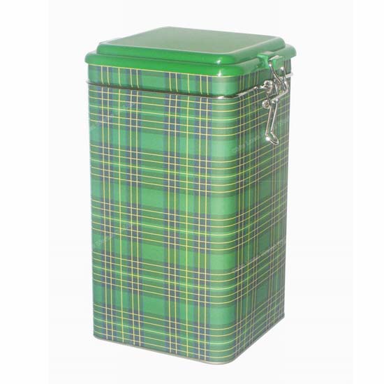 This is a tall tin can with an airtight lid. The tin box goes with a fancy sketched pattern in a green tone. The remarkable height allows the storage of large items such as sticks and rods. Give your gifts a sophisticated presentation with this tin can.