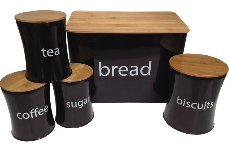 This tin canister set features five canisters in different sizes to serve different storing needs. The cover lids snap tight for a secure seal to help keep items fresh. This tin canister set is an ideal solution for space management problems in kitchens and pantries.