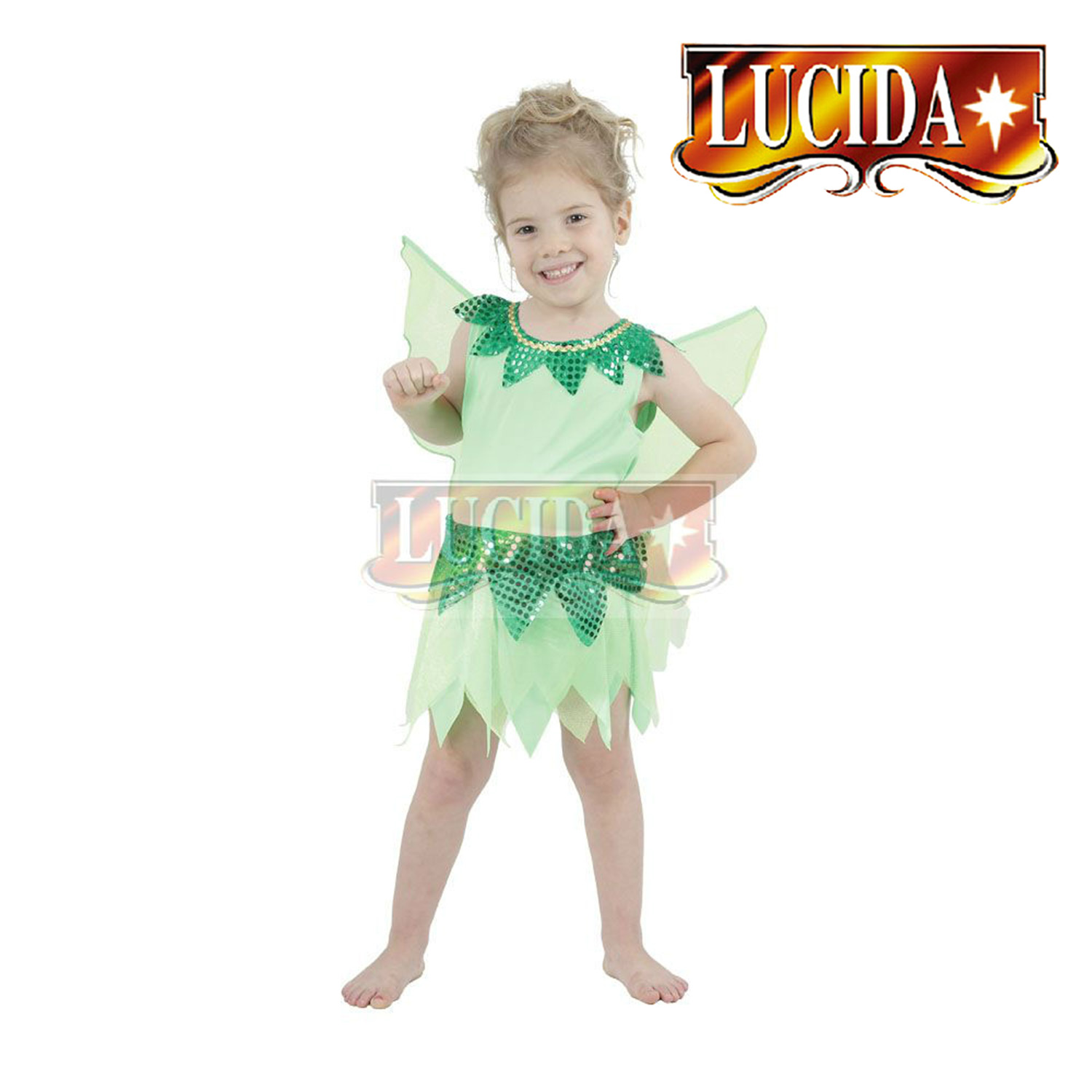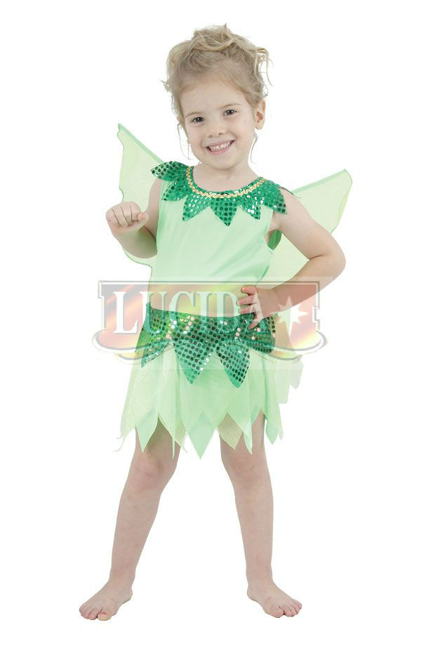 This set comes with everything you need to turn your kid into a classic fairy. The sleeveless dress features rich layering with zig-zag edges. It delivers shiny accents with tonal sequined frills on neck and waist. Outfitted with a pair of sheer wings, it completes a fairy modeling immediately. Make a whimsy come alive with this loveable costume.