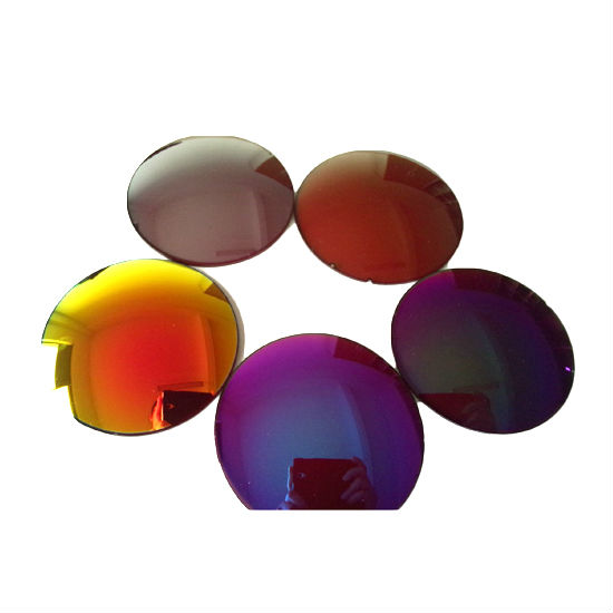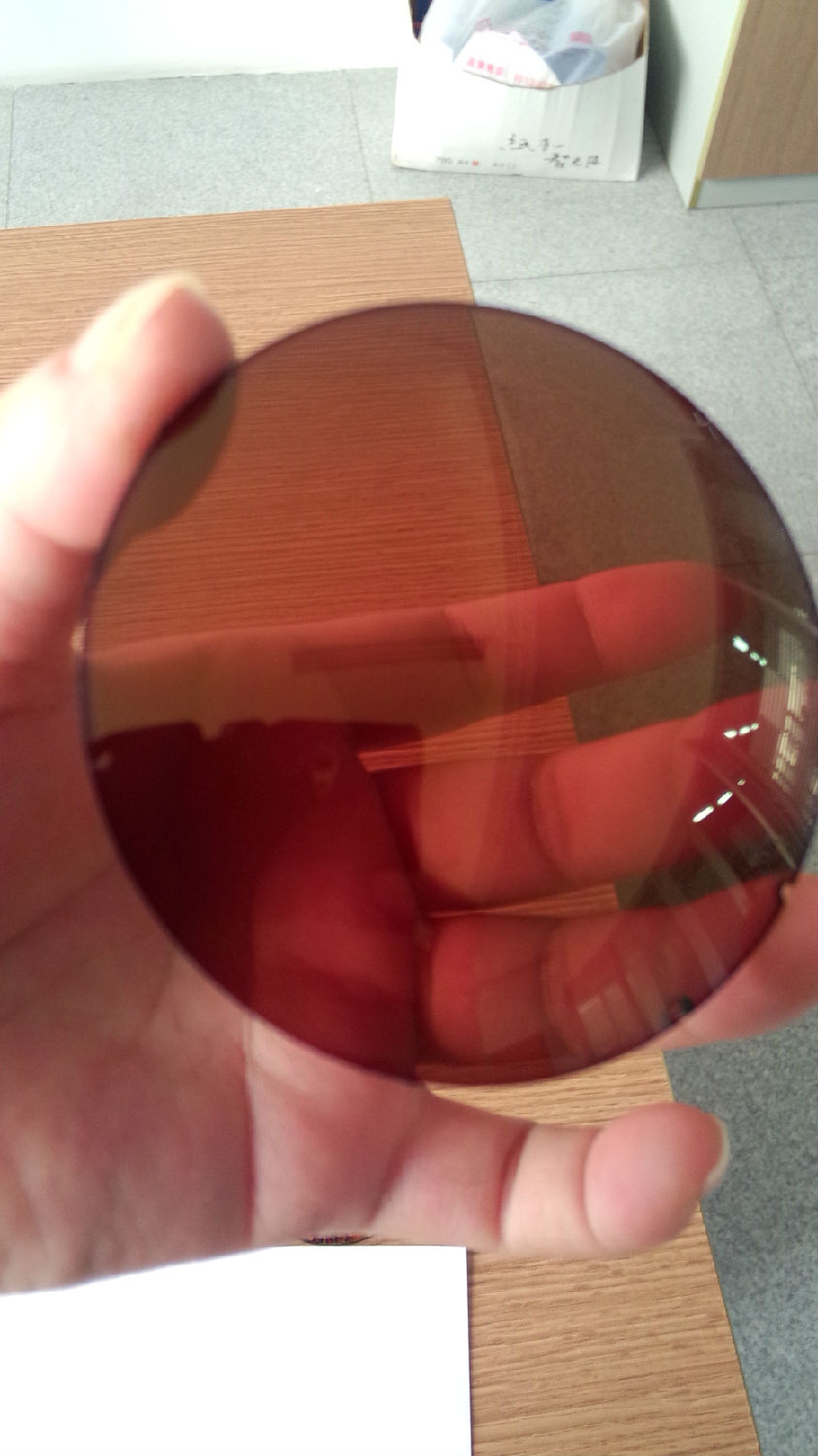Displayed is a sun lens featuring a decentered round shape. This sun lens also offers good UV protection. Available in different gradiend and solid colors, this sun lens is a good choice for making sunglasses.