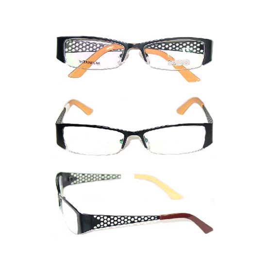 This is a pair of half-rimmed glasses in durable titanium. The temple arms feature delicate cutouts for added style. Featuring a rectangular-themed design, this titanium spectacles complement different face shapes nicely.