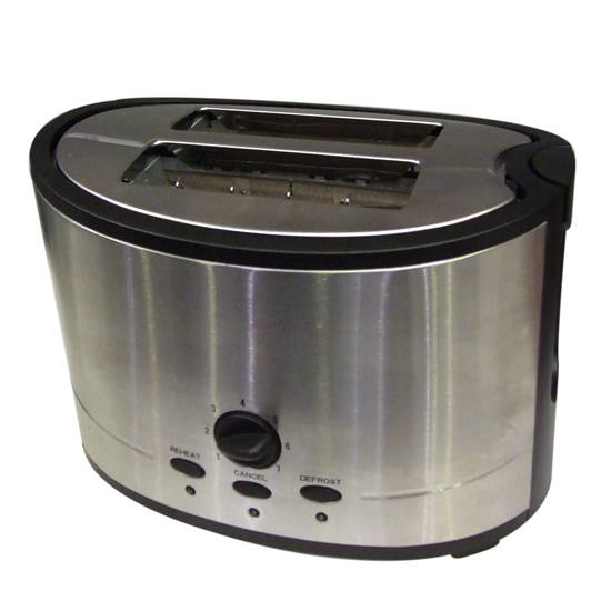 This toaster has 2 slices wide slots toaster. Functions include variable bread size toast browning control, bagel, defrost, reheat and cancel setting. Stainless steel body and slide out crumb tray make it easy for cleaning.