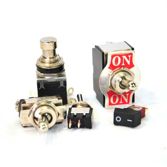 Highlighted here is a toggle switch with assorted designs. The toggle switch is manually actuated by a mechanical lever. Made of high-quality material, this toggle switch promises enhanced performance.
