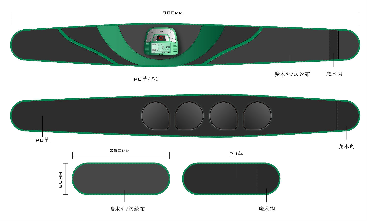 Extra Long belt built in with 4 conducting pads focusing the abdominal area