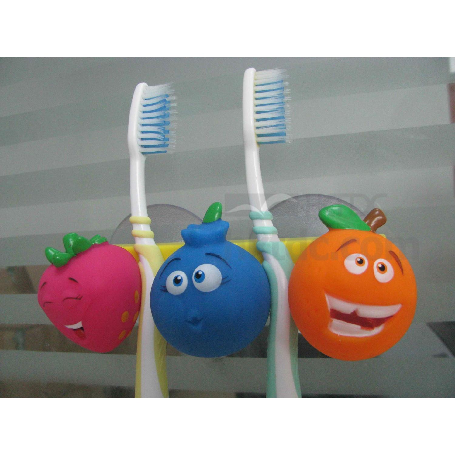 Place your toothbrush in this adorable fruities holder after a thorough oral cleaning. The cute berries family and smiling orange can prevent your toothbrush from falling into the sink. A pair of transparent round suckers is attached behind the yellow bar which promises a secure stick on the wall.