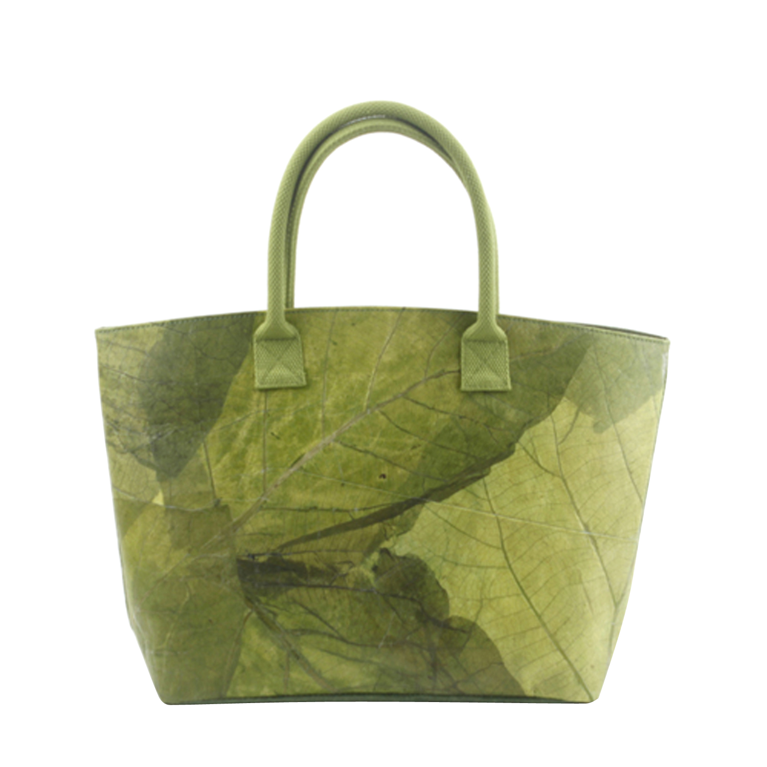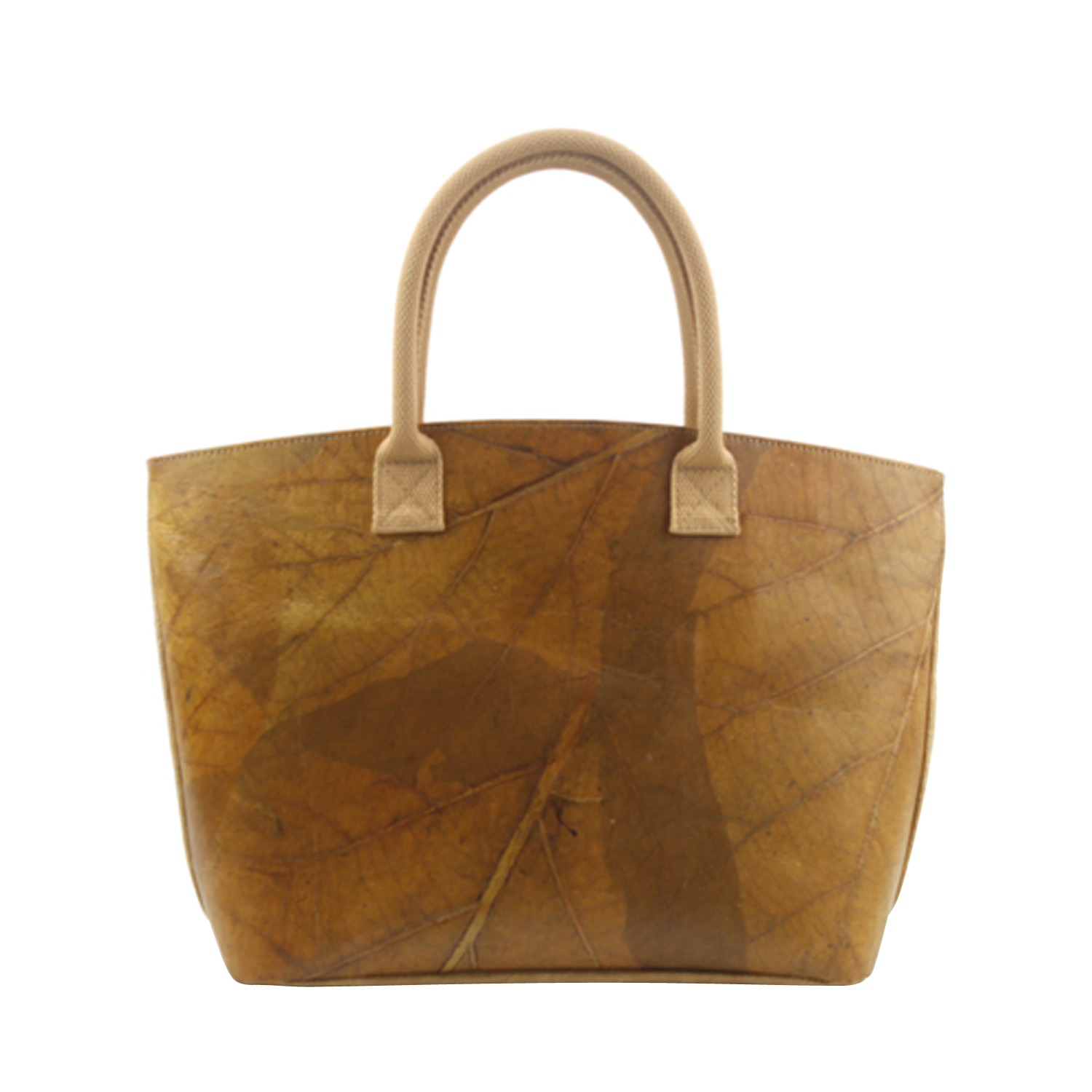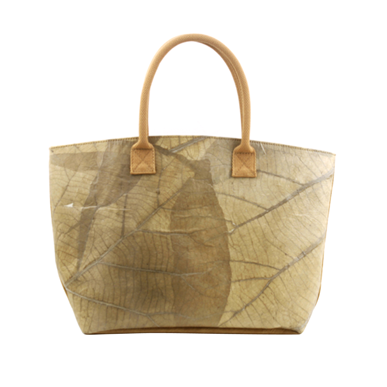 The bags are made by natural tree leaves. The leaf material is naturally grown in the mountains of Southeast Asia, which get wilted easily. Applying its’ own invented technology, they make the non-durable tree leaf become an applicable and environmentally friendly material, and can be mass produced finally.