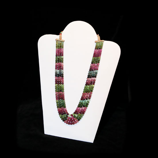 This is an elegant necklace that comes with a multi-layered appearance. It is accented with colorful tourmaline gemstones for a decorative touch. This refined necklace is an ideal addition to complete your fashion collection.