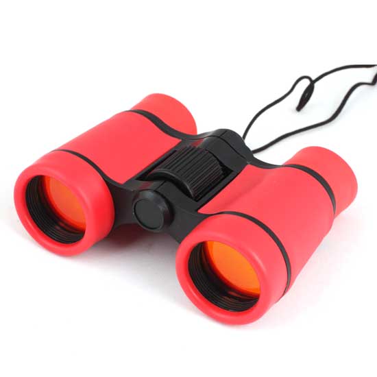 Pictured is a pair of binoculars well made with plastic for a lightweight and durable body. The binoculars can be worn on the neck for easy carriage. This pair of binoculars makes a great gift idea for your children.