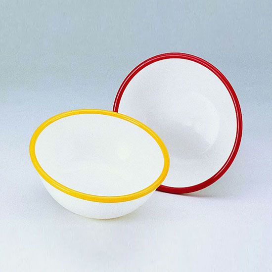 This is a toy bowl that comes in a white color. The rim is designed in a contrasting bright color for a fashionable touch. This toy bowl is made of PVC-free plastic for safe play.