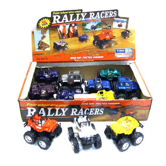 Inspired by four wheels racers, the friction driven toy car is designed with realistic outlook. It is made of plastic. Moreover, it is suitable for indoor use only.