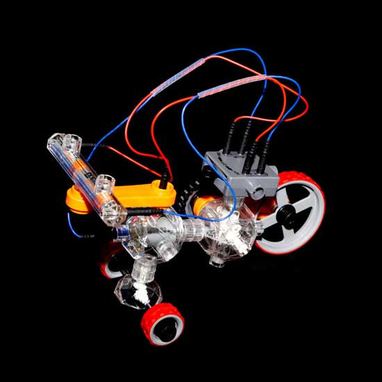 This displayed toy car features a battery-operated design. It comes with three wheels for easy gliding. This highlighted toy car is fun to play with.
