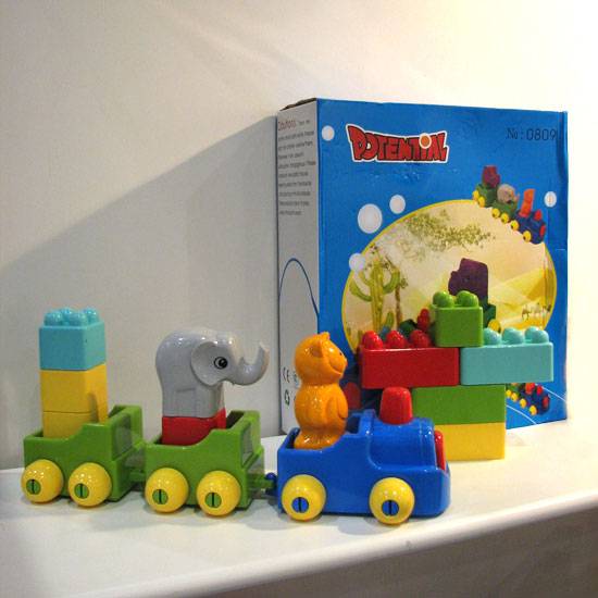 This is a toy car set consisting of 18 pieces of plastic accessories.
