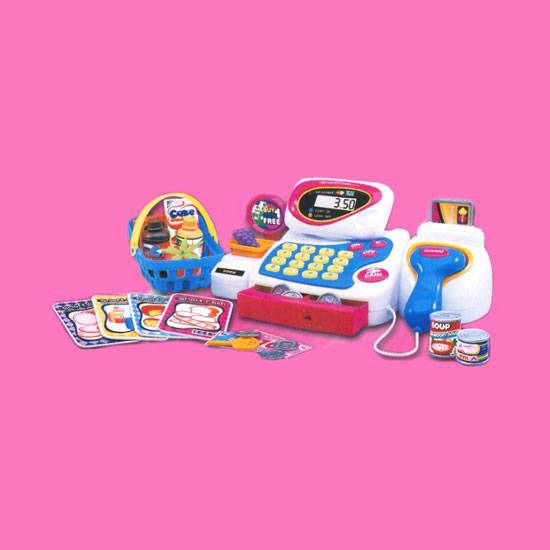 This toy register set helps children learn how to do simple transactions. The set includes an electronic cashier, toy money, toy goods and more. The colorful toy set will surely delight your kid.
