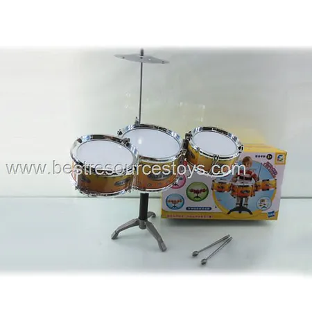 This is a toy drum set with 3 drums and 2 drum sticks. It is made of quality materials for a long service life. This toy musical instrument set will bring endless fun to your little kids.