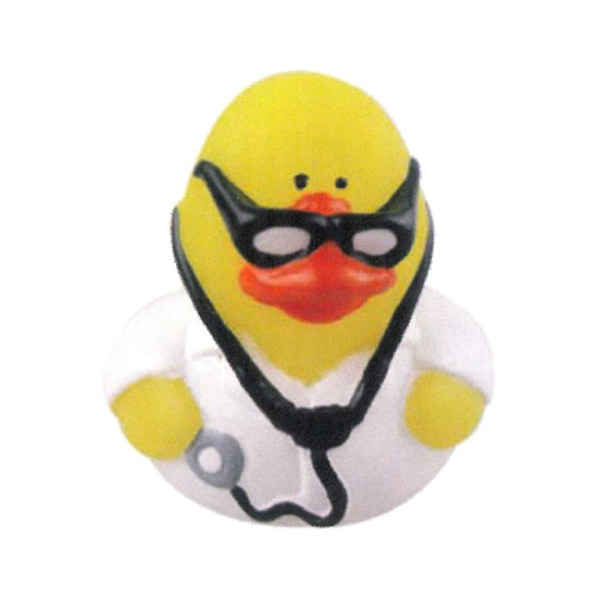 This is a toy duck dressed up as a doctor. With glasses, this toy duck is fun and unique. This high quality toy duck is made of plastic for durability.