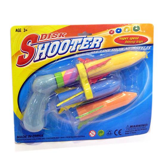 This is a toy gun with foam rockets. The toy comes with 3 foam rockets in different colours. It Can be played indoor and outdoor .