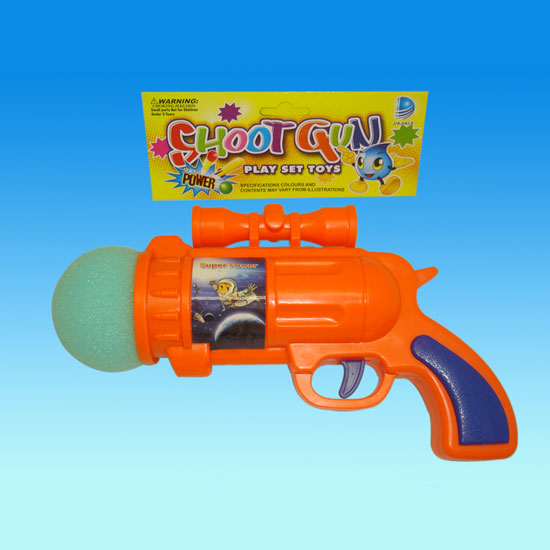 This toy gun comes in bright orange with a durable structure. It allows children to shoot a ball for added fun. This toy gun is safe for children to play with.