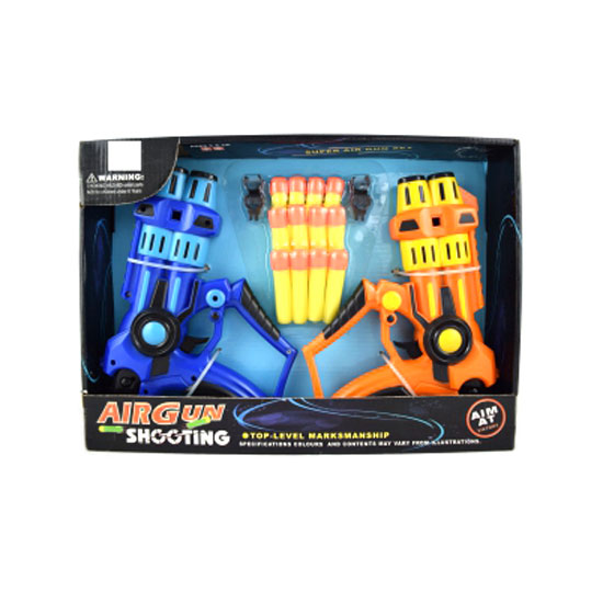 This toy weapon set features two blasters and 12 bullets. The blasters are outrageously awesome with their professional design. The amazing blasters let you shoot targets at long ranges.