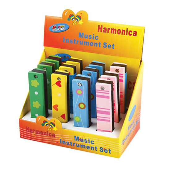 The harmonica is beautifully decorated cute patterns in bright colors. Children can use the harmonica to create different tunes. The harmonica is surely a great musical instrument toy for little children.