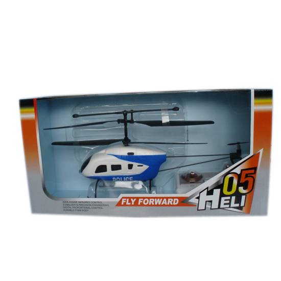 This is a toy remote control helicopter imitating the appearance of a police helicopter. It adopts the digital proportional infra-red (IR) control system and has a special design for stable flying.