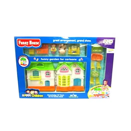 This is a battery operated toy house boasting a colorful appearance to offer a lively touch. It is designed with various accessories such as figures and furniture. This appealing toy house is a nice addition to your beloved child's play room.