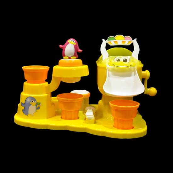 This toy ice-cream maker features a brilliant yellow design with cute penguin decorations. The durable construction ensures a long using time. This adorable toy ice-cream maker is sure to offer kids hours of fun.