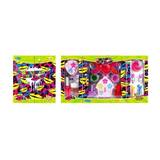This toy make-up set is finely composed of a set of cream blush, nail polish, lipsticks and hair accessories. The toy make-up set lets you create different gorgeous looks for parties. The make-up set will delight every little make-up fan.