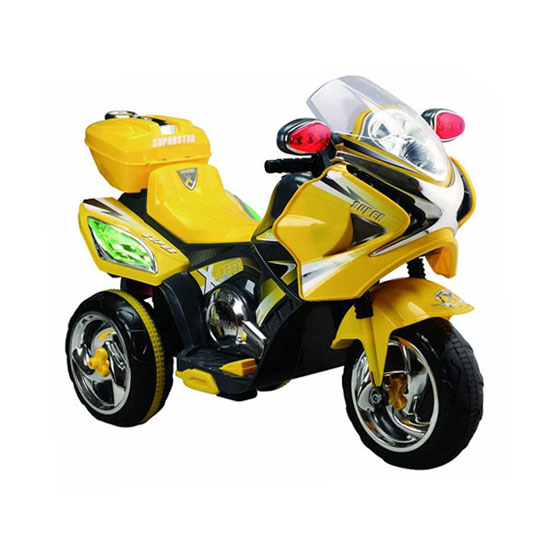 This toy motorcycle is ideal for kids to ride on and play with. It is designed in bright colors for an eye-catching look. The robust housing can withstand daily wear and tear.