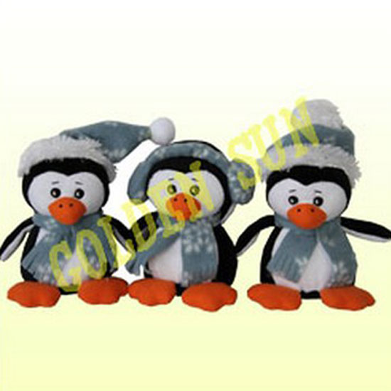 Shown here is a Christmas penguin featuring a cute appearance. Designed with sound effects, this toy penguin provides hours of playing fun to your kids. Make the day of your dear one by presenting him/her this adorable stuffed penguim.