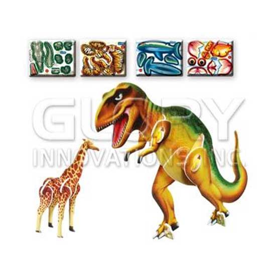 The toy puzzle is made of quality PP for a durable construction. The vivid appearance adds a delicate touch. Different animal or dinosaur themes are available for your option.