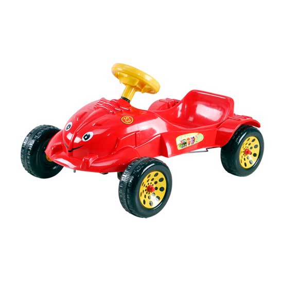 This stylish toy ride-on car features a streamlined red body, four large wheels and a yellow steering wheel. This great toy ride-on car allows your kid to experience the fun of being a little driver. The durable toy ride-on car can withstand daily wear.