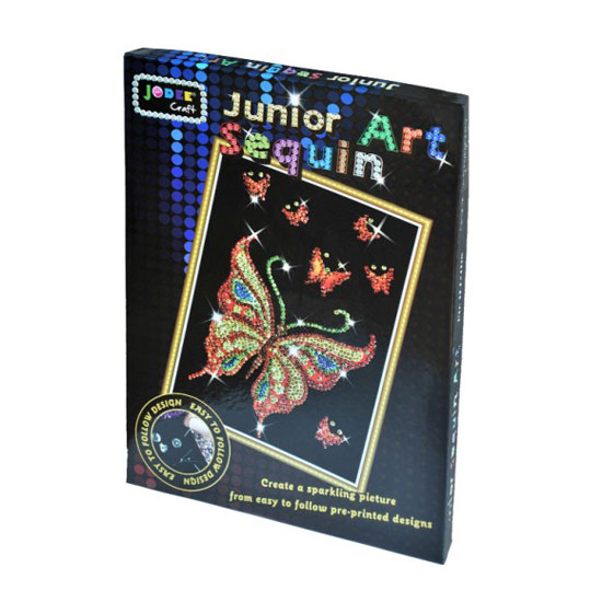 This toy sequin set comes with a paper card, sequins, pins and a foam frame. It is finely crafted with refined details for an eye-catching look. This toy set is a great choice for kids aged six years and above.