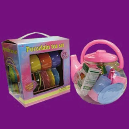 This is a box of kitchen play set that includes several colourful cups and dishes, a dish holder and a big trasparent plastic teapot. The big trasparent plastic teapot can store large amount of kitchen utensils that are of smaller size.