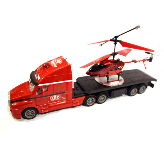 This model toy set features the design of a heavy-duty truck with a helicopter on the cargo carrier platform. The exquisite toy truck and helicopter showcase excellent craftsmanship with refined details. It makes a great gift choice for boys and model toy collectors.