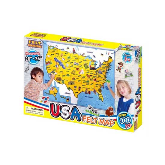 This felt map helps young children memorize the U.S.A. map effectively. It introduces different states, capitals and monuments in the U.S.A to children. The well-designed map is ideal for children, parents and educators.