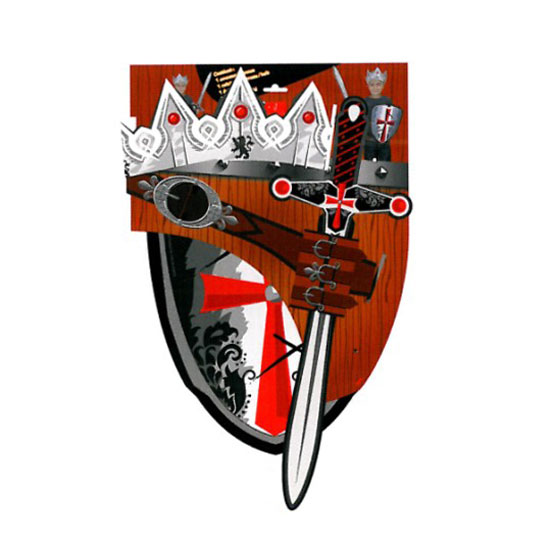 This toy weapon set features a shield, a sword, a baldric and a crown. The crown is adorn with red "diamonds" for a luxurious look. This toy weapon set is an essential for your elite little warrior.